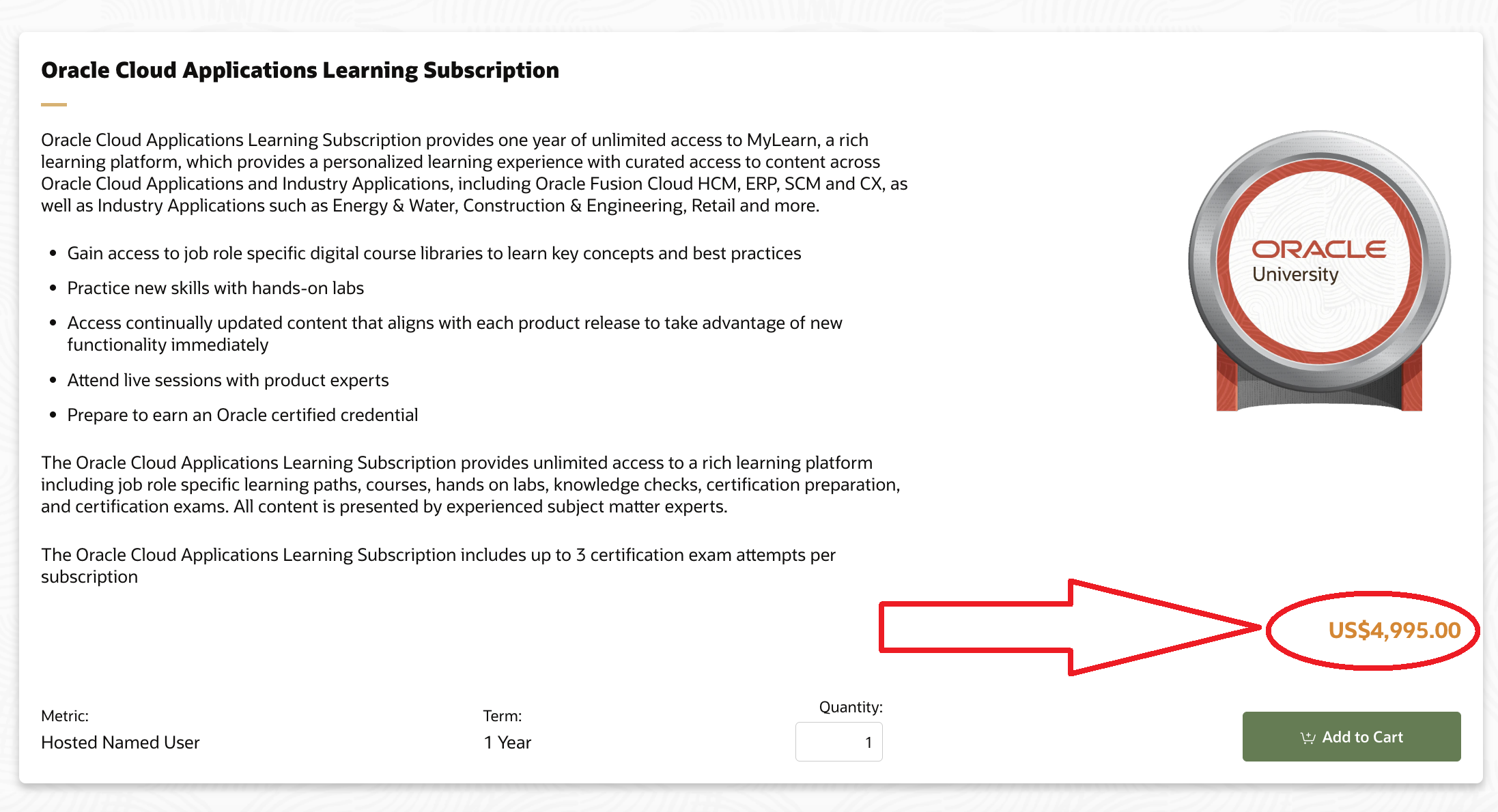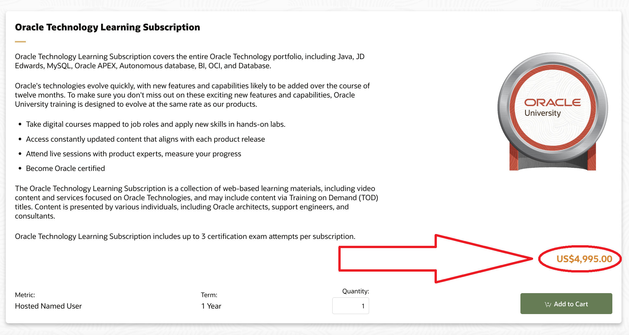 What is Oracle Learning Subscription: We need to pay $4995 to oracle to get the access to learn the required skills. You can only view, can’t download due to oracle security.